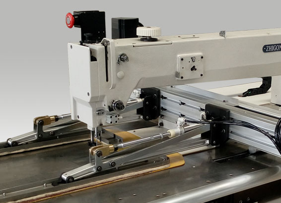 志強公司新設(shè)計的機頭可升降的特厚料花樣機,臂下操作空間可以達到420毫米,機頭升降高達100毫米,便于收放物料,創(chuàng)新的升降結(jié)構(gòu)和傳動結(jié)構(gòu)設(shè)計,在機頭獲得穩(wěn)定動力和下降壓力的同時,縫紉轉(zhuǎn)速可達1200轉(zhuǎn)/分鐘。配備自動剪線和自動繞線等實用功能,讓縫紉工作更加穩(wěn)定。采用五倍超大旋梭,梭芯線量大,使用極粗的高強度滌綸縫紉線時也能確??p制效率。采用步進閉環(huán)電腦控制系統(tǒng),可自由編程,根據(jù)客戶要求隨時設(shè)計、下載和貯存新花樣,有效節(jié)省了人工,大大減少企業(yè)對熟練工的依賴程度。同時本機采用氣動潤滑系統(tǒng),減少保養(yǎng)時間,延長機器服務(wù)期限。
